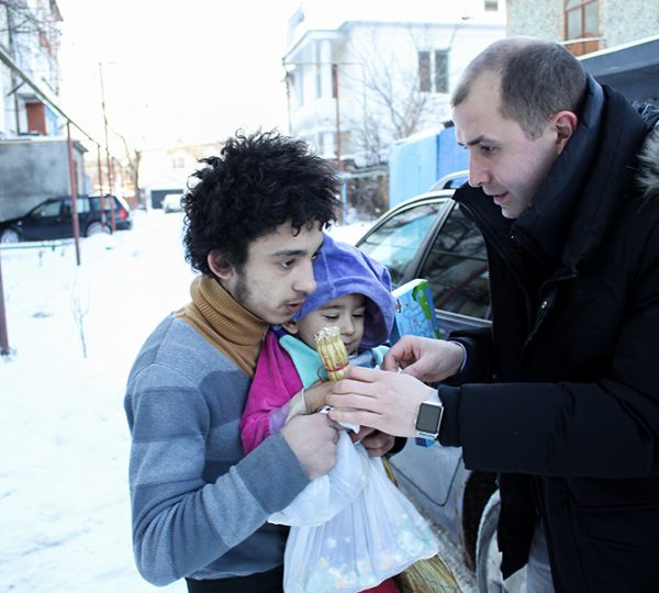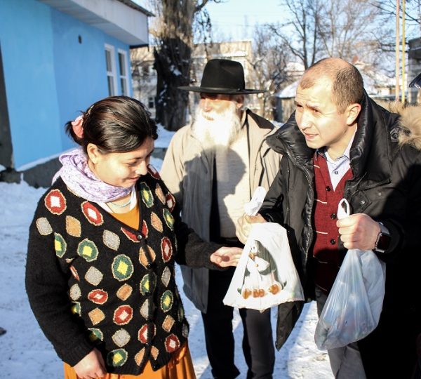 After a wonderful meal with Romani style stuffed cabbage with turkey bones, Mamaliga (traditional Moldovan bread), and Romani style roasted turkey served with a delightful Moldovan cognac and a Romani salute, we got to work. We drove around and distributed Christmas present to the poor and earth-forgotten Romani children and seniors.